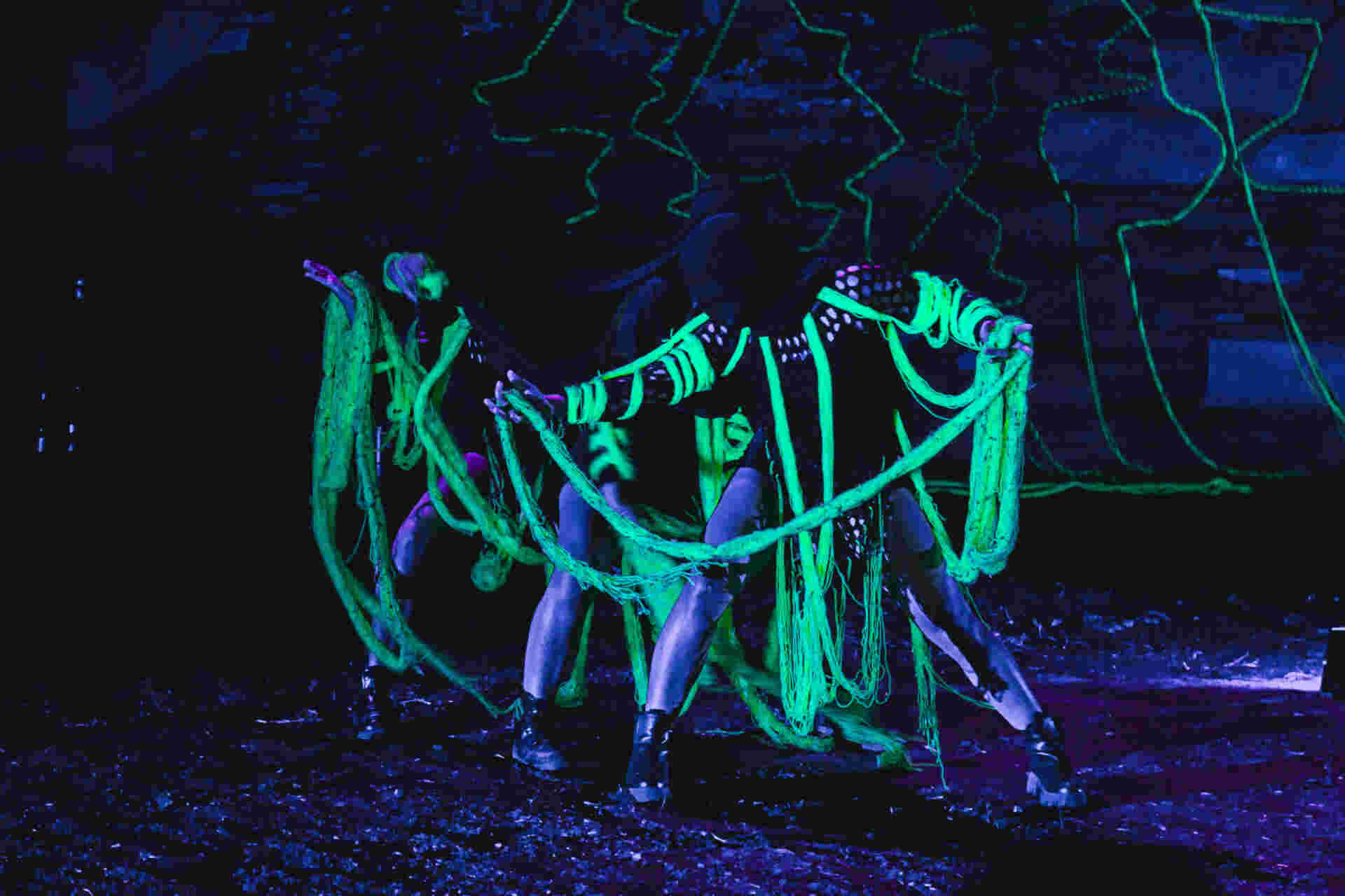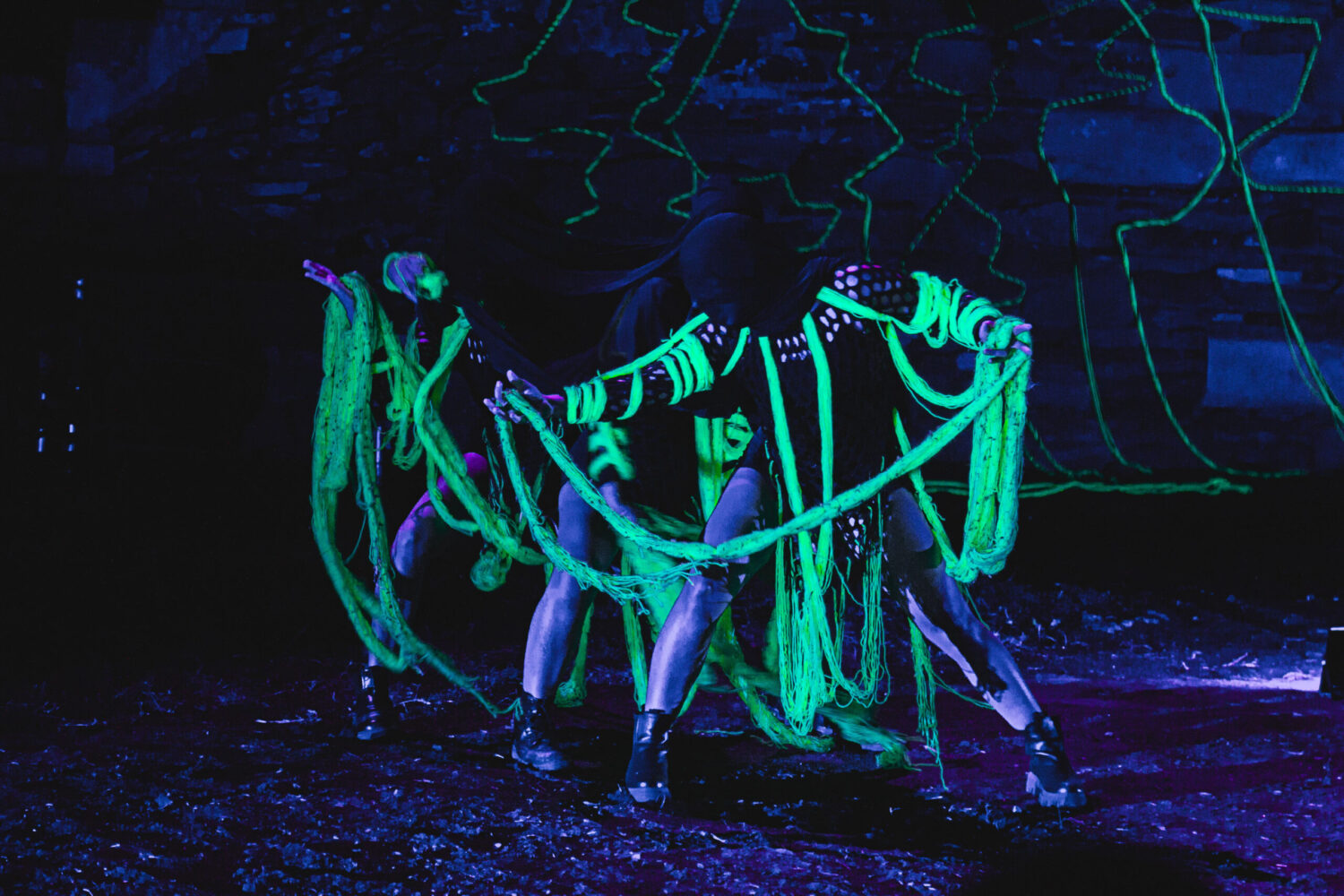 The piece follows an original script, created by combining new texts with textual and directorial excerpts from works such as T.S. Eliot’s The Waste Land, Shakespeare’s Macbeth, Euripides’ The Bacchae, and many other references across different time periods. Moreover, snapshots from cinema, music, painting, and mythology inspire the direction and choreography of the piece, adding an element that is equivalent to intertextuality in the performance art.