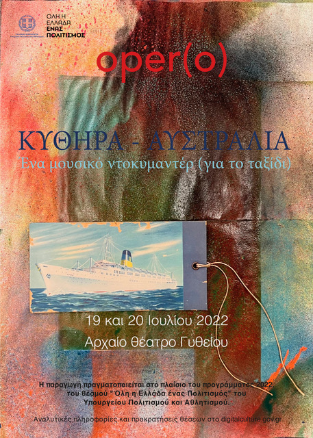 Kythera is a special place, whose modern history has been defined by migration and refugee flights. The performance is a compilation of stories, songs, photographs and other material from the island’s local population. It was on this material that the musical documentary – a “farewell” ceremony was based.