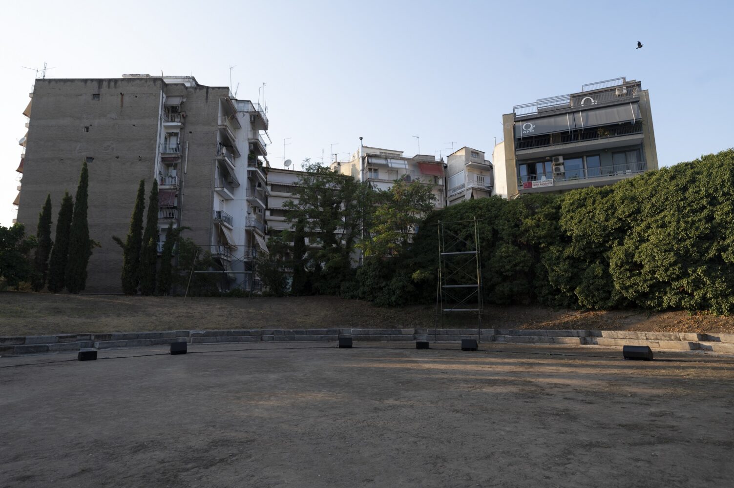 Το Β΄ Αρχαίο Θέατρο της Λάρισας, γνωστό και ως «μικρό», είναι χτισμένο στις νοτιοδυτικές υπώρειες του λόφου Πευκάκια, που ισοπεδώθηκε στη δεκαετία του 1950 ώστε να διευκολυνθεί η οικοπεδοποίηση και η ανέγερση πολυκατοικιών στην περιοχή. Το αρχαίο θέατρο άρχισε να κατασκευάζεται τον 1ο αιώνα π.Χ., ωστόσο ολοκληρώθηκε μόνον η κατασκευή της σκηνής και της ορχήστρας, ενώ το κοίλο και οι πάροδοι έμειναν ημιτελή. Το θέατρο εντοπίσθηκε στη συμβολή των οδών Βελισσαρίου και Εργατικής Πρωτομαγιάς το 1978, με αφορμή εκσκαπτικές εργασίες για την ανέγερση συγκροτήματος πολυκατοικιών. Η συστηματική ανασκαφή του μνημείου πραγματοποιήθηκε τα έτη 1985 και 1986 και με αυτή ήλθαν στο φως η σκηνή, η ορχήστρα, το κοίλο, η δεξιά πάροδος και τμήμα της αριστερής.