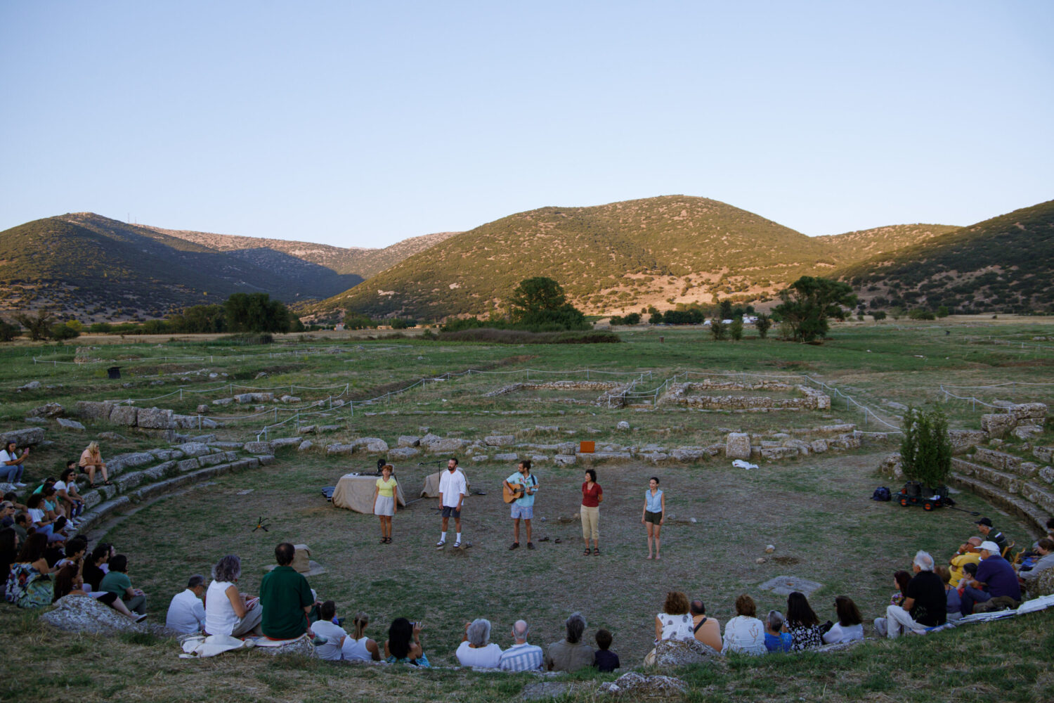 Τέσσερις ηθοποιοί και ένας μουσικός ταξιδεύουν στην Αρκαδία, αναζητώντας τα θραύσματα του μύθου. Σκοπός τους: να ιδρύσουν μια ουτοπική κοινότητα σε αρμονία με τη φύση, στην παράδοση του Αρκαδικού Ιδεώδους.