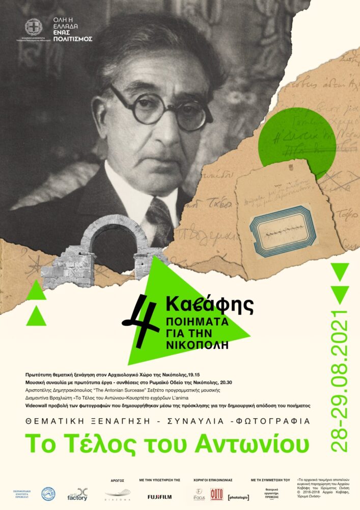 Το διαθεματικό πολυσυλλεκτικό εγχείρημα Καβάφης: 4 ποιήματα για τη Νικόπολη επιχειρεί τη σύνδεση του ποιητικού σύμπαντος του Καβάφη και της σχέσης του με την αρχαιότητα, έτσι όπως αυτή αποκαλύπτεται μέσα από τέσσερα ποιήματα, με τον αρχαιολογικό χώρο της Νικόπολης και της ιστορίας της. Στο πλαίσιο αυτό, η ARTIFACTORY υλοποιεί για το 2021 μια θεματική εμπειρία με έμπνευση το ποίημα του Κ. Π. Καβάφη Το τέλος του Αντωνίου.