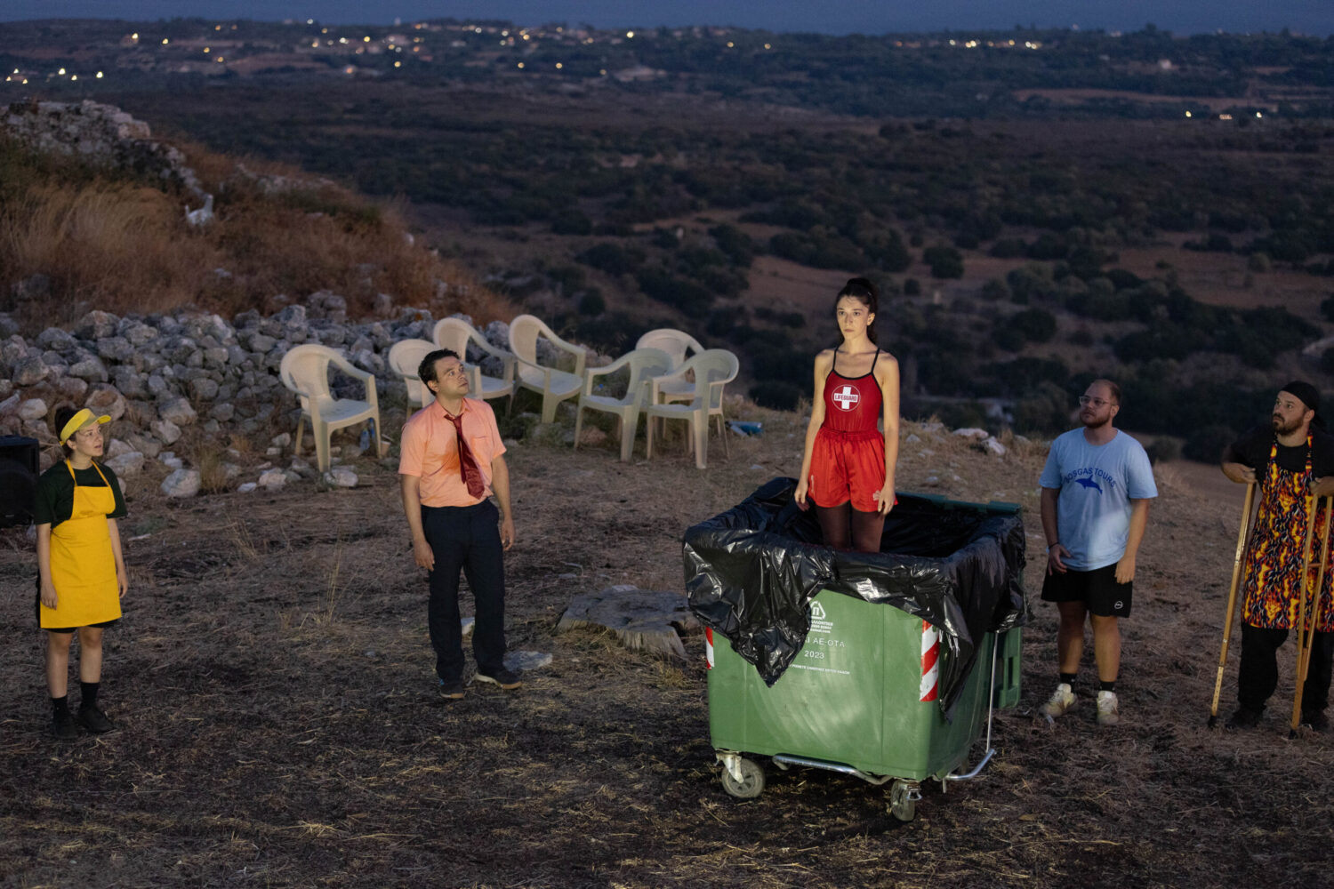 Στη σκηνή πρωταγωνιστεί ό,τι μένει στη σκιά του καλοκαιριού: οι σκέψεις που δεν μοιράζονται οι ξεναγοί με τους τουρίστες, οι συζητήσεις του προσωπικού στις κουζίνες, τα παρεχόμενα δωμάτια των είκοσι τετραγωνικών, που μαζί με τα τέσσερα γκαρσόνια κοιμίζουν και 23 κατσαρίδες.