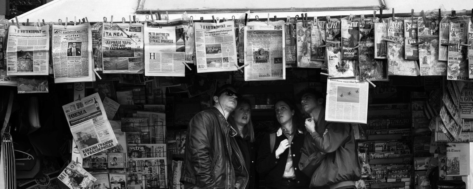 Τέσσερις ηθοποιοί καθισμένοι σ’ ένα τραπέζι. Το συμπόσιο αρχίζει. Τροφή τους οι εφημερίδες, τα λάπτοπ και τα κινητά τους. Διαβάζουν και σχολιάζουν τα πρωτοσέλιδα του ελληνικού, τουρκικού και κυπριακού τύπου από το 1922 μέχρι σήμερα.