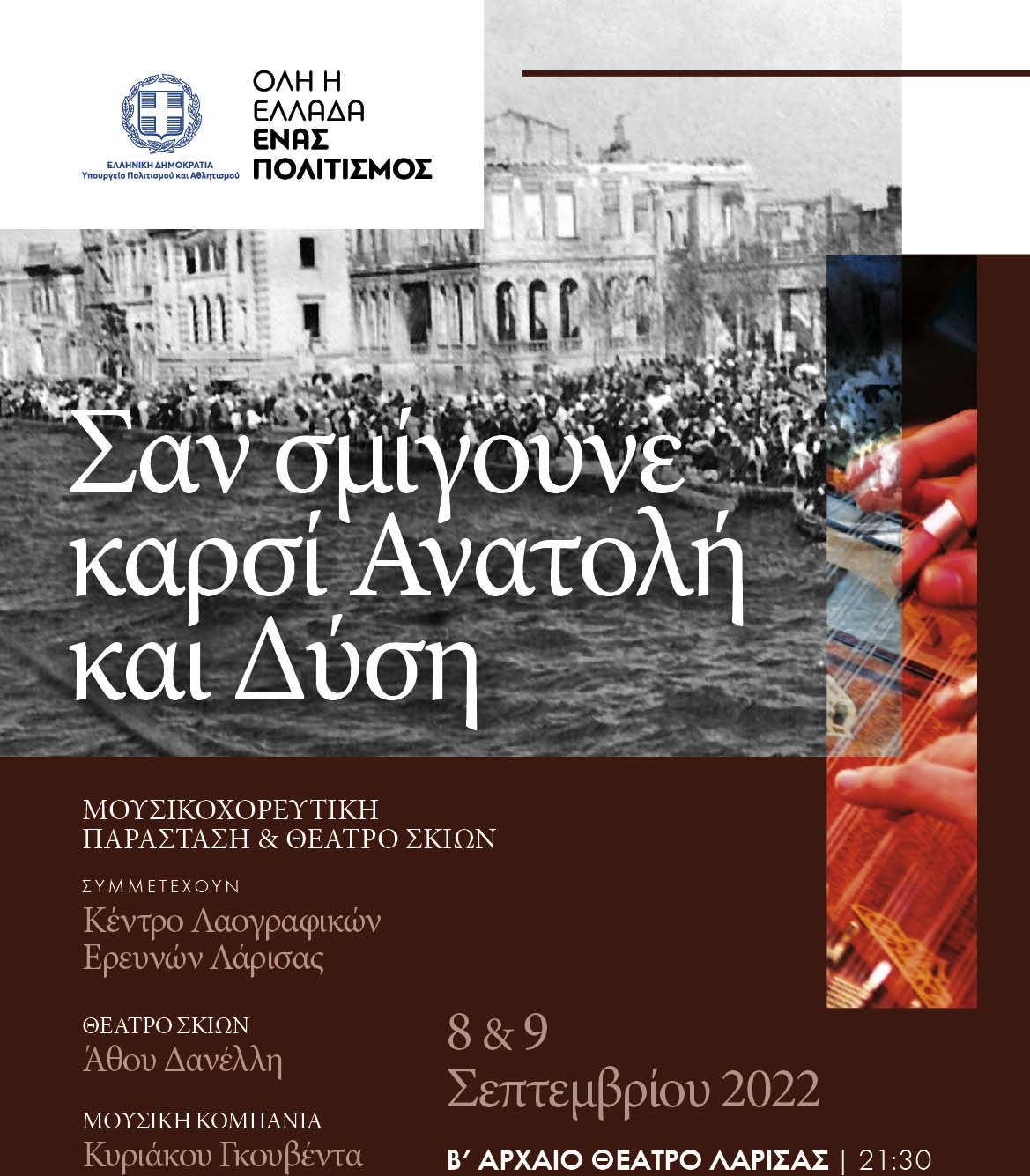 Μια μουσικοχορευτική παράσταση, σε συνεργασία με το θέατρο σκιών του Άθου Δανέλλη και της μουσικής κομπανίας του Κυριάκου Γκουβέντα, η οποία θα επιχειρήσει να καταδείξει τη μουσική και χορευτική παράδοση της Μικράς Ασίας, μέσα από ένα ταξίδι στον τόπο και στον χρόνο πριν την καταστροφή της. Όπως και στον μετέπειτα βίαιο ξεριζωμό των κατοίκων της και τον μετασχηματισμό αυτής της παράδοσης στο νέο πλαίσιο διαβίωσης στην Ελλάδα της περιόδου εκείνης.