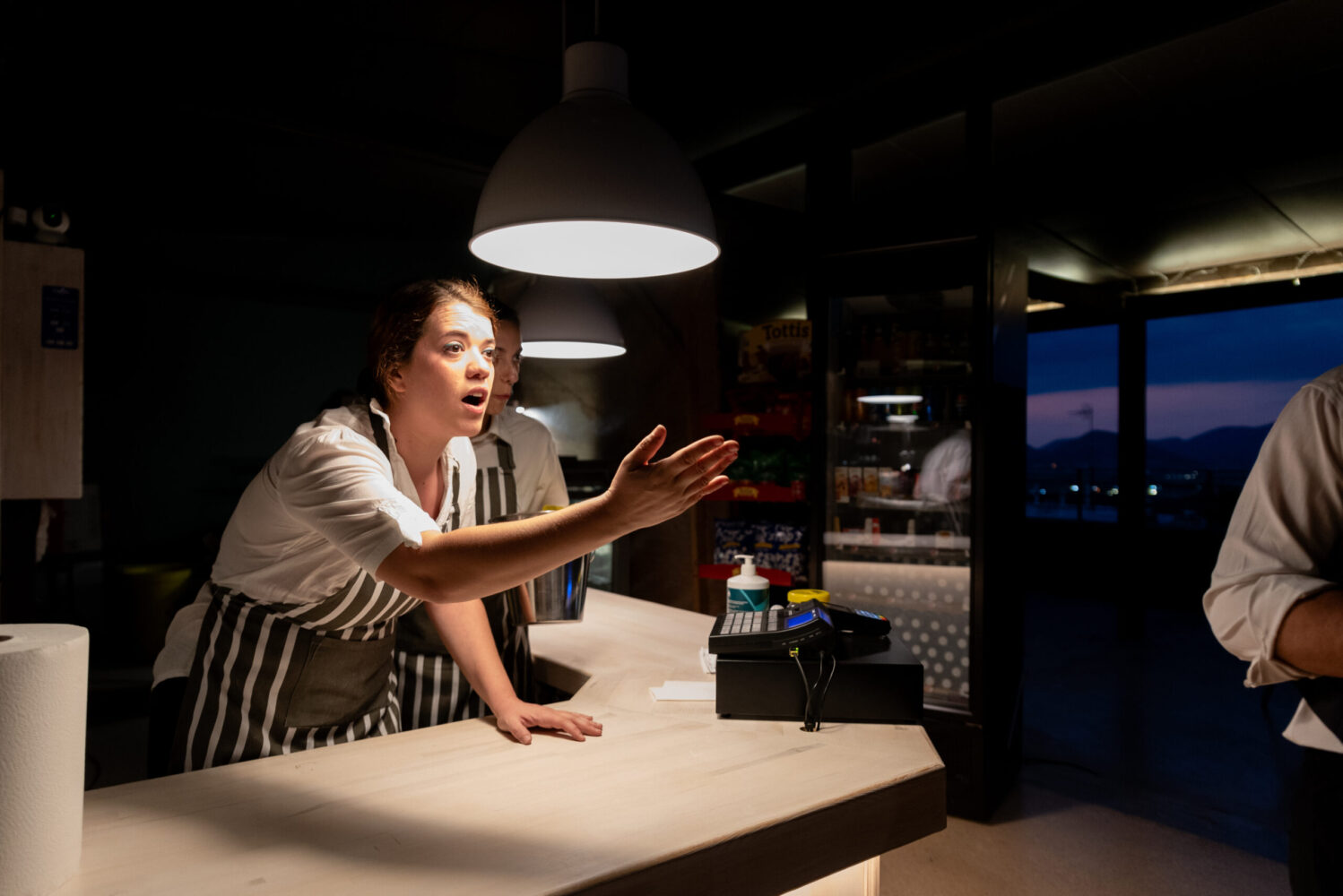 Κατά τη διάρκεια ενός γκαλά στην αυλή του αρχαιολογικού μουσείου, θα ξεσπάσει ένας απροσδόκητος καβγάς μεταξύ της ιδιοκτήτριας και των εργαζομένων του κέτερινγκ στα παρασκήνια. H σύγκρουση σύντομα θα μεταφερθεί στον χώρο της εκδήλωσης και η σκηνή θα μετατραπεί σε ένα πολιτικό φόρουμ με θέμα τον τουρισμό και την εργασία την περίοδο της σεζόν.