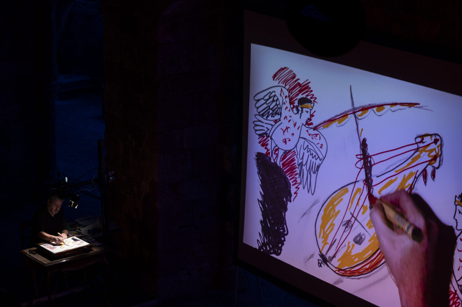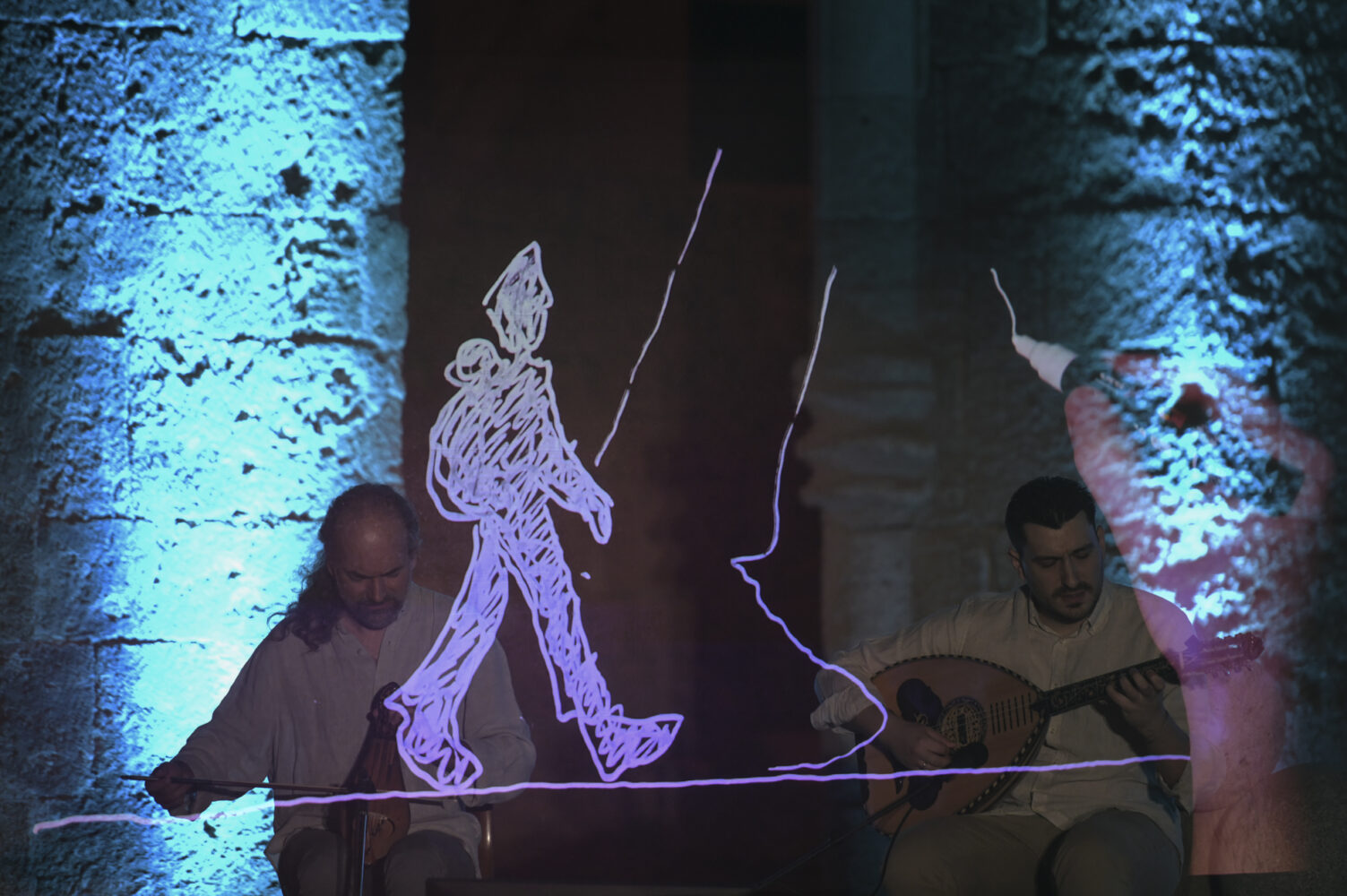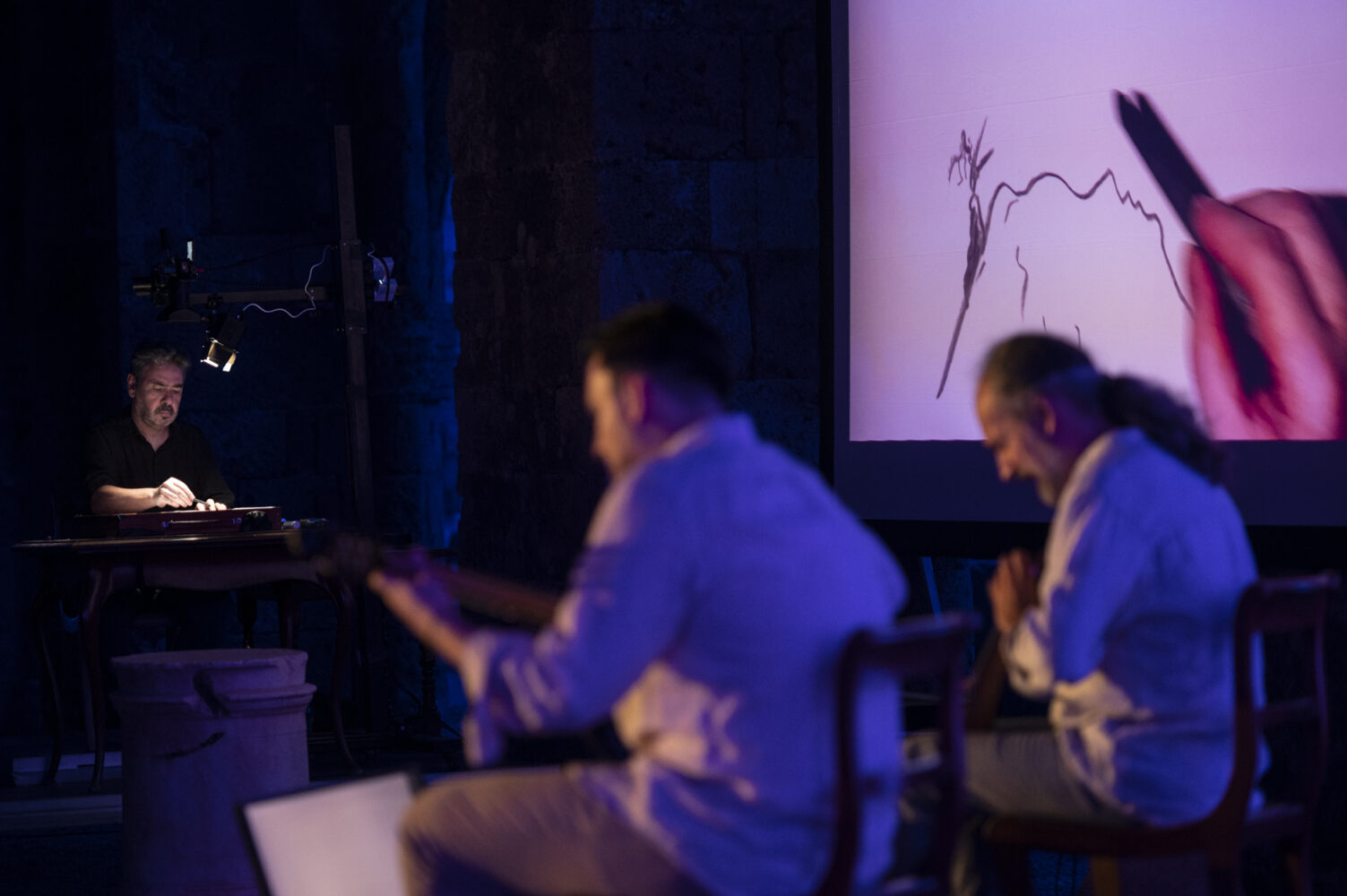 Το ντουέτο συνοδεύεται με εντυπωσιακό live drawing από τον Soloύp, ο οποίος αποτυπώνει και συμπληρώνει τις ιστορίες και τους τόπους από τους οποίους εμπνέονται οι μουσικές συνθέσεις. Με τα σκίτσα του δημιουργεί και καταστρέφει σε πραγματικό χρόνο μπροστά στα μάτια του θεατή και τοποθετεί μια ιστορία εικόνων παράλληλα και σε αντιπαράθεση.