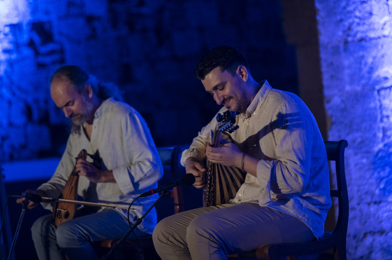Ο Σωκράτης Σινόπουλος και ο Βασίλης Κώστας, δυο από́ τους σημαντικότερους και διεθνώς αναγνωρισμένους Έλληνες μουσικούς, καταθέτουν μια δυναμική́ και πρωτότυπη μουσική παράσταση με τίτλο Στροβιλισμοί στο Αιγαίο, στην οποία εξερευνούν τις δυνατότητες συνδυασμού́ δύο ιστορικών για τον ελληνικό́ χώρο μουσικών οργάνων, της λύρας και του λαούτου. Με αφετηρία τις μεσογειακές παραδόσεις και όχημα τις αυθεντικές συνθέσεις και τους διαδραστικούς αυτοσχεδιασμούς τους, δημιουργούν σύγχρονα μουσικά́ τοπία σε πραγματικό́ χρόνο, προσφέροντας μια σπάνια ακουστική́ εμπειρία.