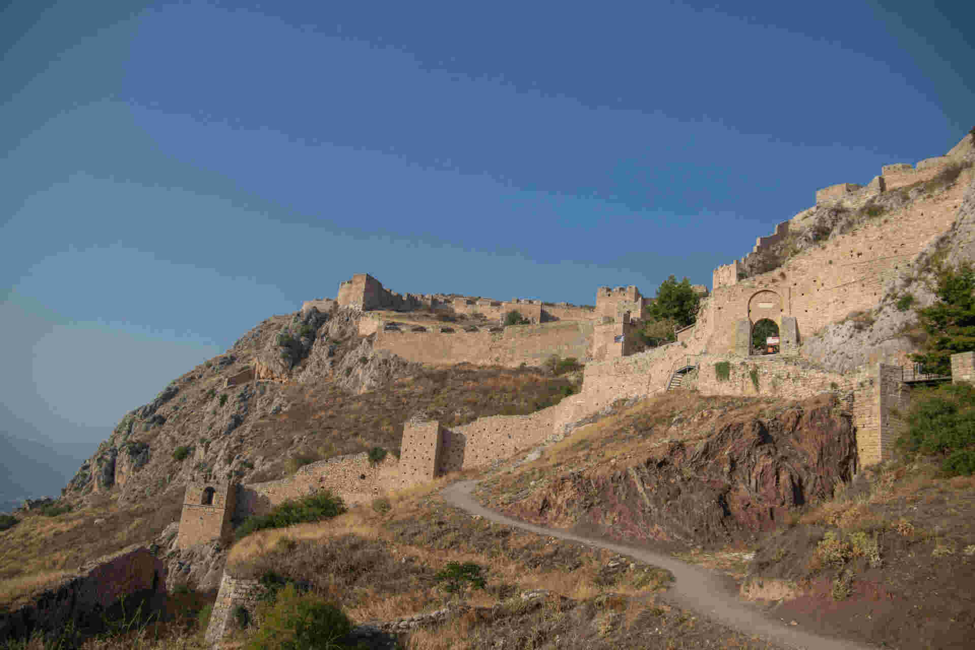 Η οχύρωση εξασφαλίζεται με σύστημα τριών περιβόλων, που χωρίζονται μεταξύ τους με τείχη, ενισχυμένα με πύργους και προμαχώνες. Τρεις επιβλητικοί πυλώνες οδηγούν στο εσωτερικό, όπου υπάρχουν ερείπια κτισμάτων όλων των εποχών. Διακρίνονται τμήματα του τείχους της κλασικής αρχαιότητας. Ανοικοδόμηση και προσθήκες νέων οχυρώσεων της βυζαντινής περιόδου, εκτεταμένα οχυρωματικά έργα της εποχής της Φραγκοκρατίας και της Ενετοκρατίας. Επεμβάσεις κυρίως στο εσωτερικό έγιναν επί Τουρκοκρατίας.